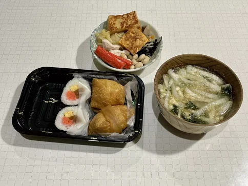 残り物の寿司折があったので、おかずを減らしてバランスを調整。...