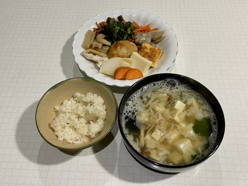 高野豆腐が復活したくらいで、昨日と変わらない夕食。作り置きお...
