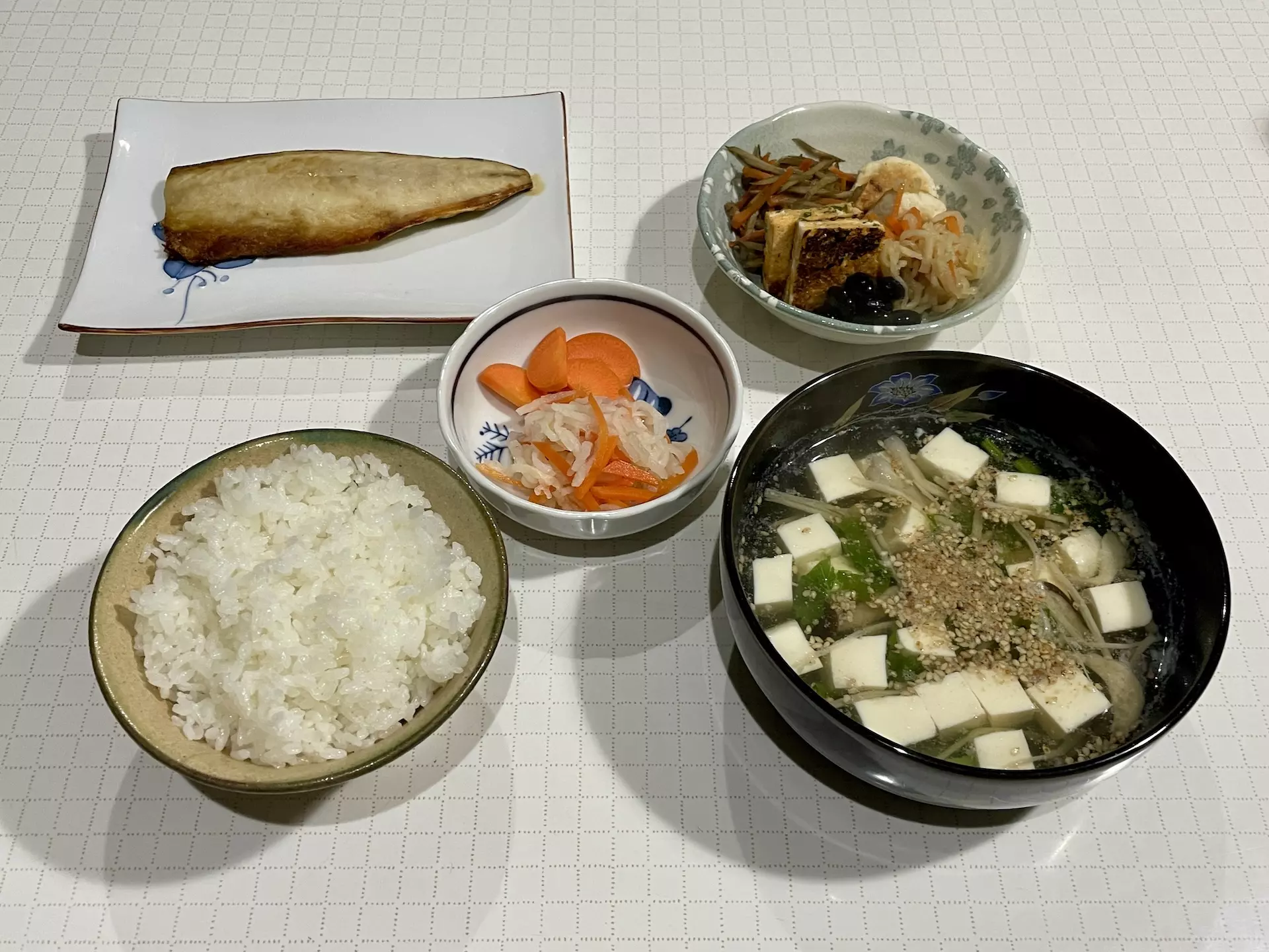 魚を焼いて作り置きおかずをちょっとプラス。畑に残っていた大根を切って干しはじめたので、また1週間くらいで自家製切り干し大根が食べられるかと思います。しばらくは気温も高いみたいなので、大丈夫かと思いますが。