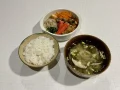 - きのこ、豆腐、あおさの味噌汁