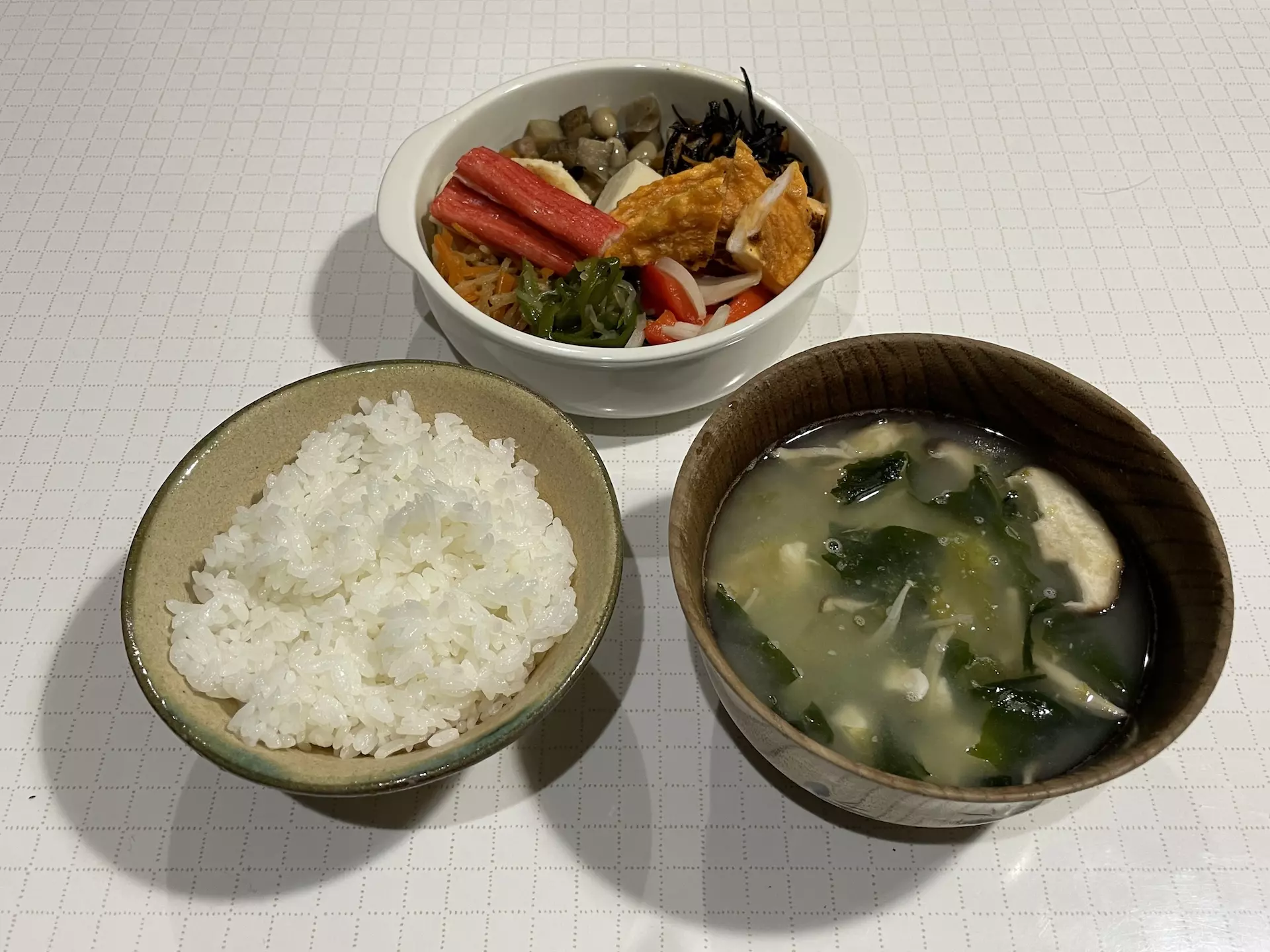 昨日とあまり変わらない夕食で、作り置きおかずも充実。栄養バランスも悪くないし、適量ずつ盛り付ければ彩りも良いので、考えることも少なくて非常に助かります。
