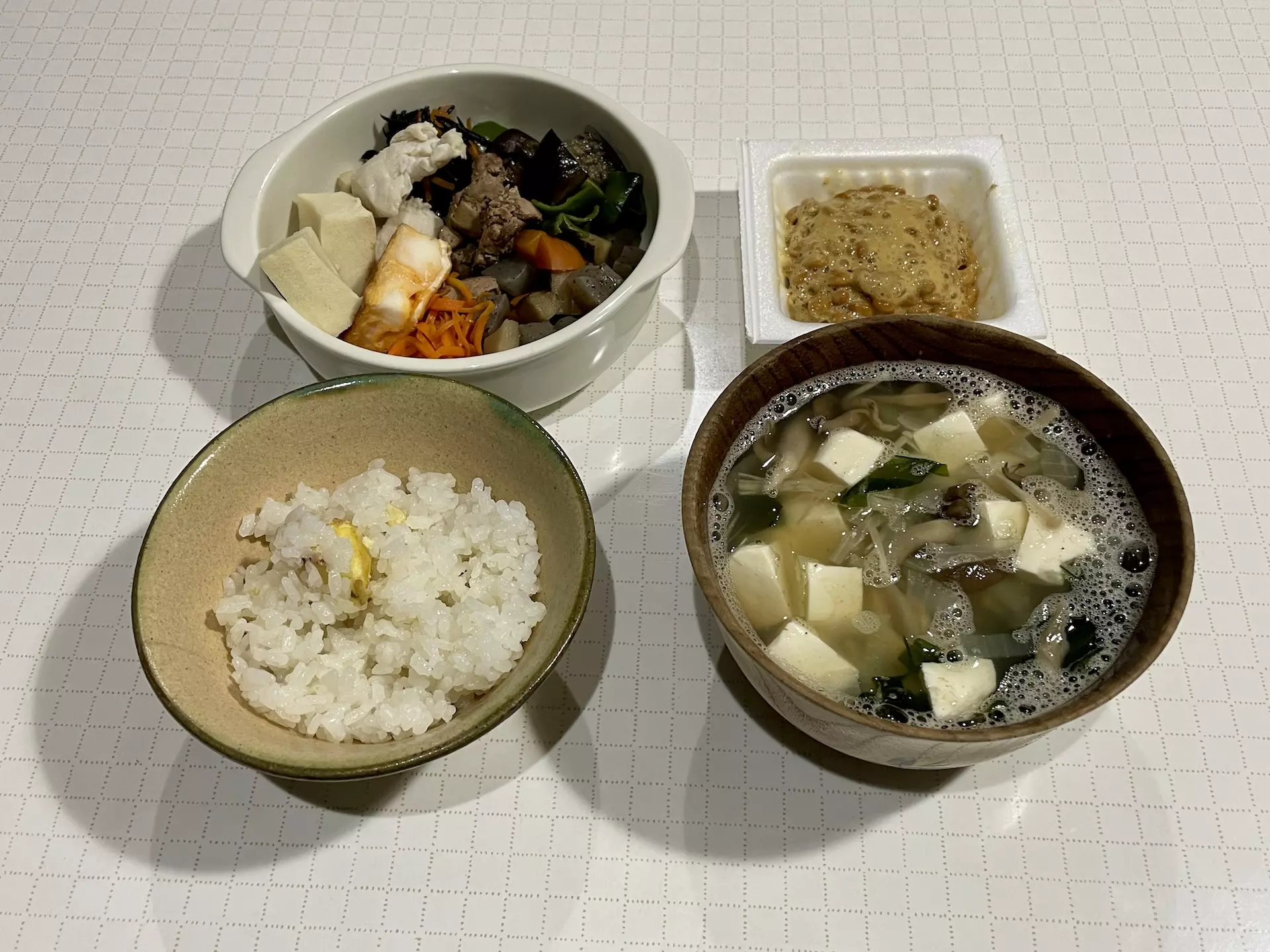 栗ごはんを含めて、昨日と似た感じの夕食。このボリュームの夕食にも慣れてきて、これくらいがいいんだなって改めて感じています。炊いたごはんが中途半端に余ったりしないのも、無理なく続けられているコツなんじゃないかって。そう、無理したり頑張ったりすると続かないですからね。
