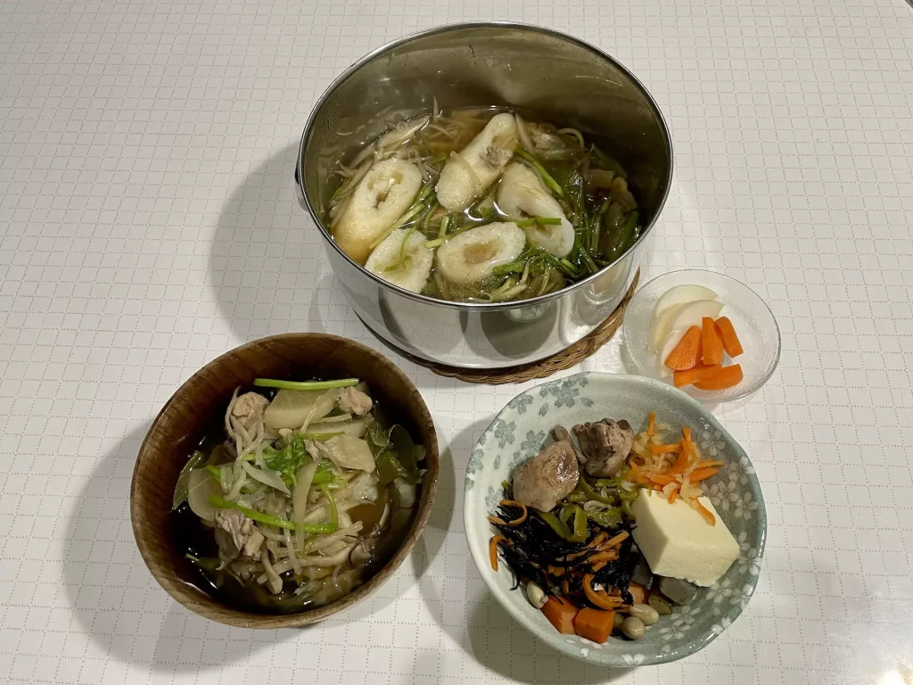 秋田の親戚から送られてきたきりたんぽ鍋をしました。きりたんぽに鶏肉やスープ、野菜にきのこまでセットになったものですが、さらに大根やにんじんなどを追加して一層豪華な鍋に。秋田県民ではありませんが、やはりきりたんぽ鍋を食べると、もう冬なんだな〜と実感します。