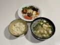 • きのこ、玉ねぎ、豆腐、大根の葉、わかめのお吸い物