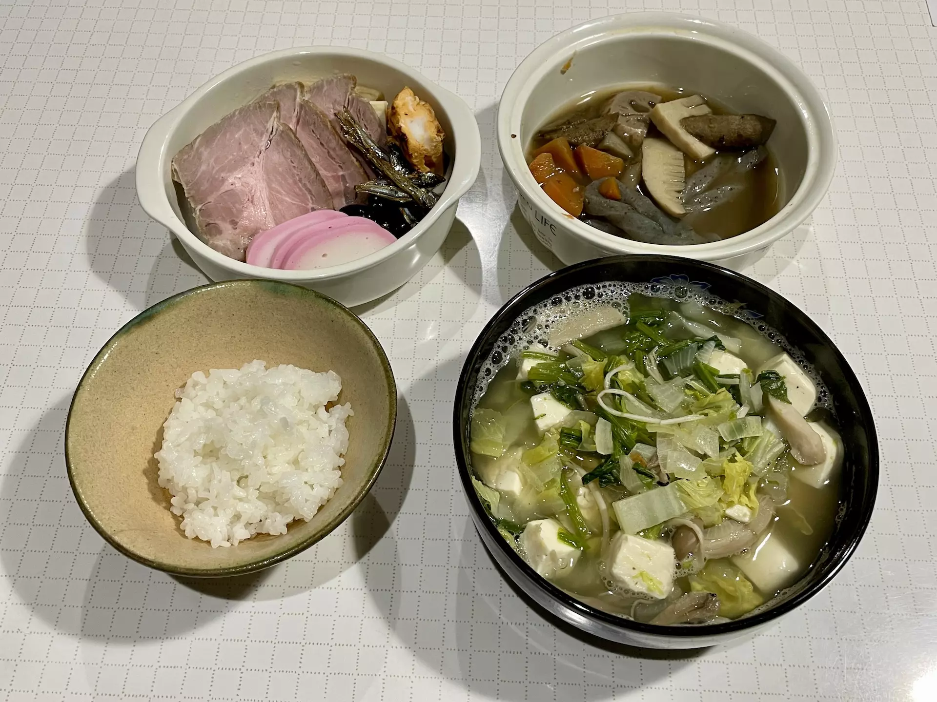 正月用のおかずをなるべく片付けようと、あるものを片っ端から皿に盛り付けました。多少は残っているものの、明日にはキレイに片付きそうです。一方でミックスきのこが終わったり、通常の作り置きおかずもそろそろ必要になってきたので、明日買い物にでも行きたいと思います。