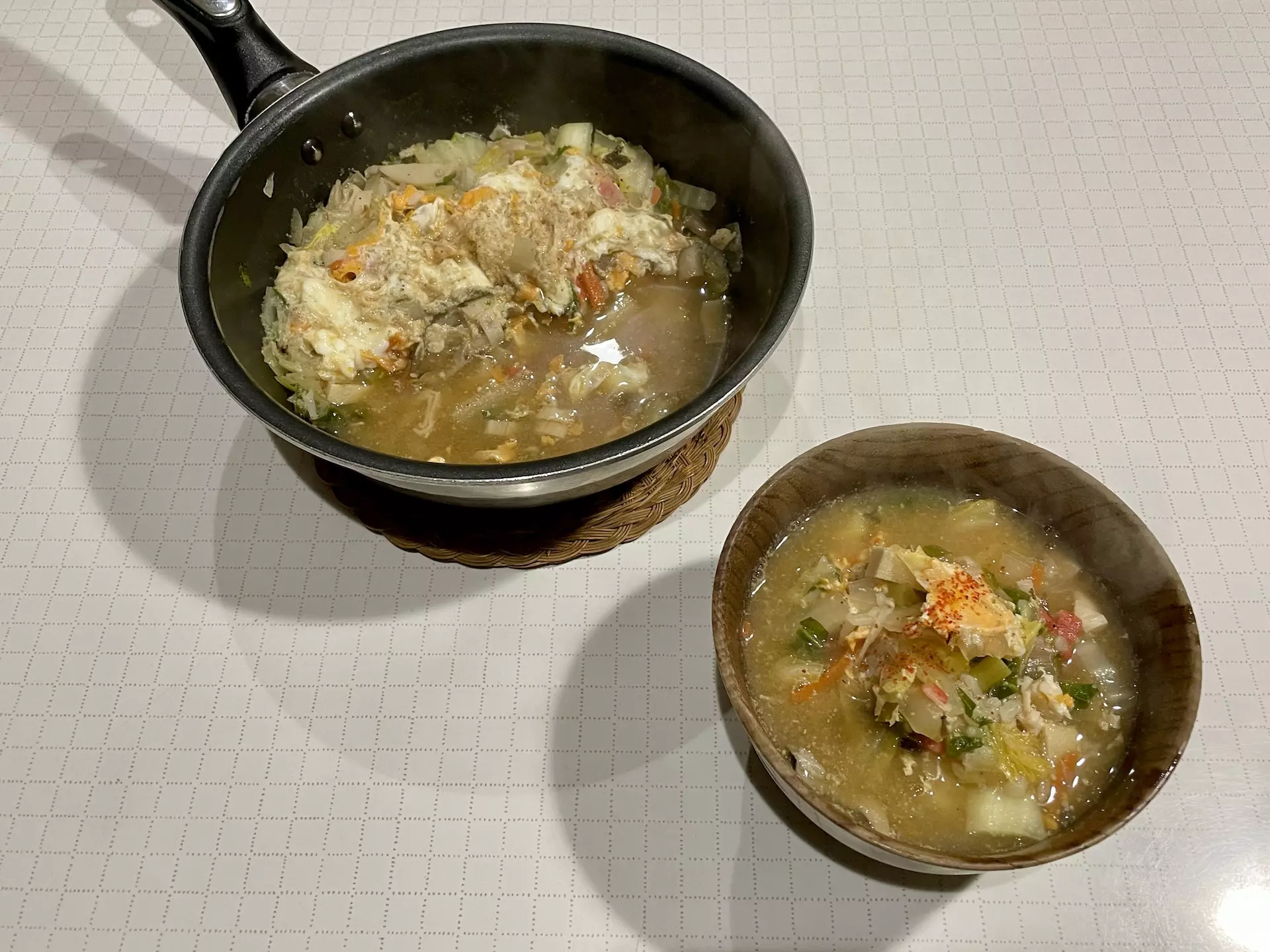 昨日は友人と飲んでいて写真を撮るのを忘れました。そして、今日は昼に食べすぎたせいかお腹が空いておらず、さっぱりとした雑炊オンリー。ですが、入っているおかずは作り置きおかずを使っているので、見た目が違うだけで中身はほぼ変わりません。10分でできるので楽なもんですよ。