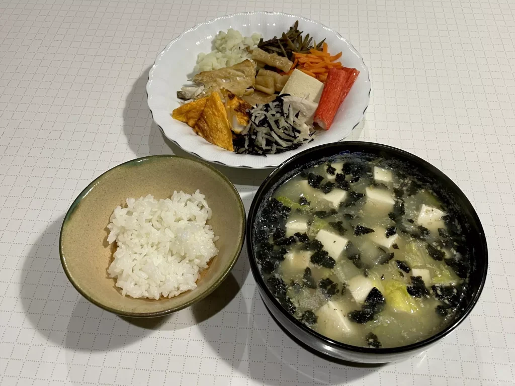 ひじきと切り干し大根の甘酢和え&はんぺん入り卵焼きを作ったので、おかずは若干賑やかな感じに。暖かくなって身体を動かすのが苦でなくなったせいか、食べる量は変わらないのに若干痩せました。ただ、エネルギー不足になるとメンタルが不安定になるので、気をつけたいと思います。
