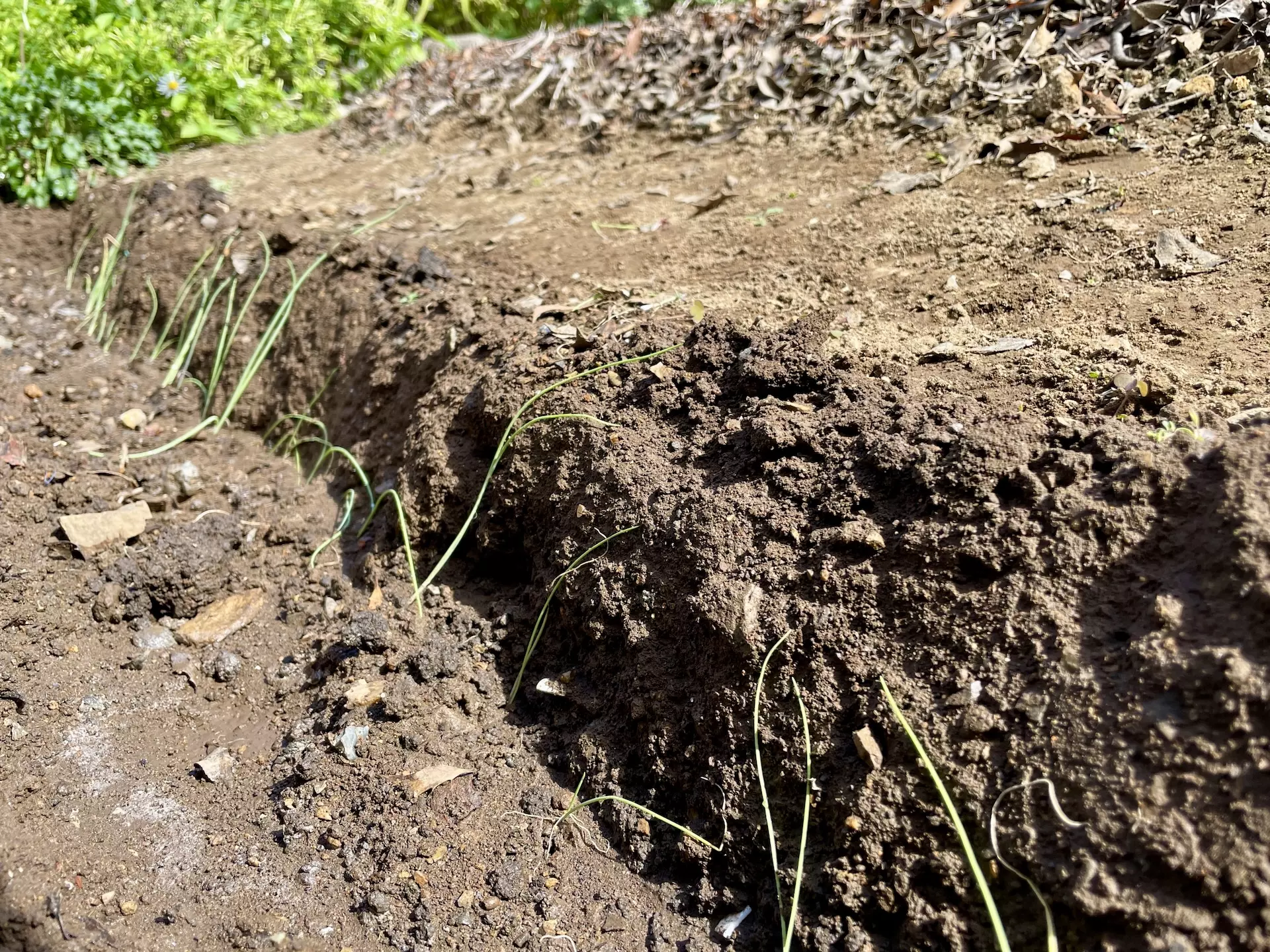 春に採った種で苗を作ったままずっと放置していた長ねぎをようやく植え付けました。成長するには半年くらいはかかるので、収穫できるのは春先でしょうか。こうやって植えるだけで大したことはしなくていいし、季節に関係なく収穫できるので本当に便利な野菜です。