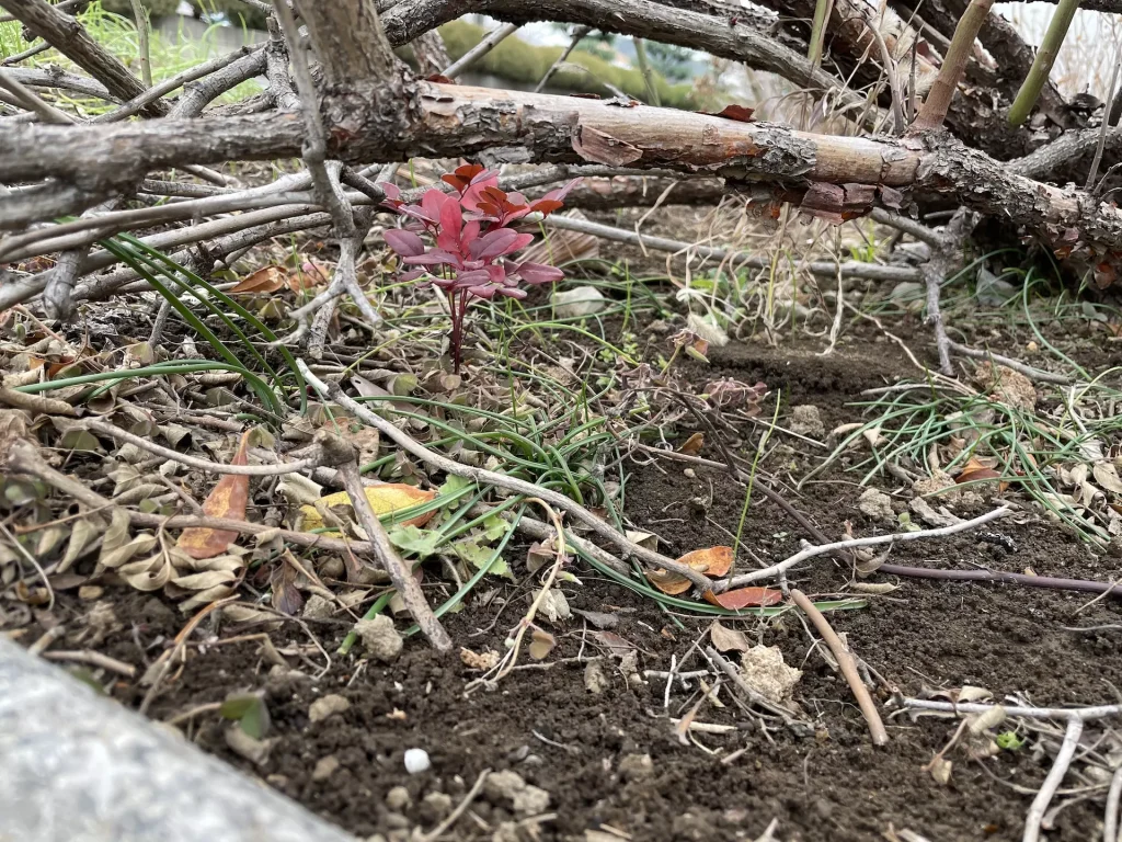 家の近くを歩いていたら、赤い実が残る低木の根本から小さな新芽が出ているのを発見しました。草はある程度分かりますが、樹木はあまり分からないので、何の芽なのか不明なのは残念なところ。すでに先客が幅を利かせていて、大きくなるのは難しいでしょうが頑張って欲しいですね。