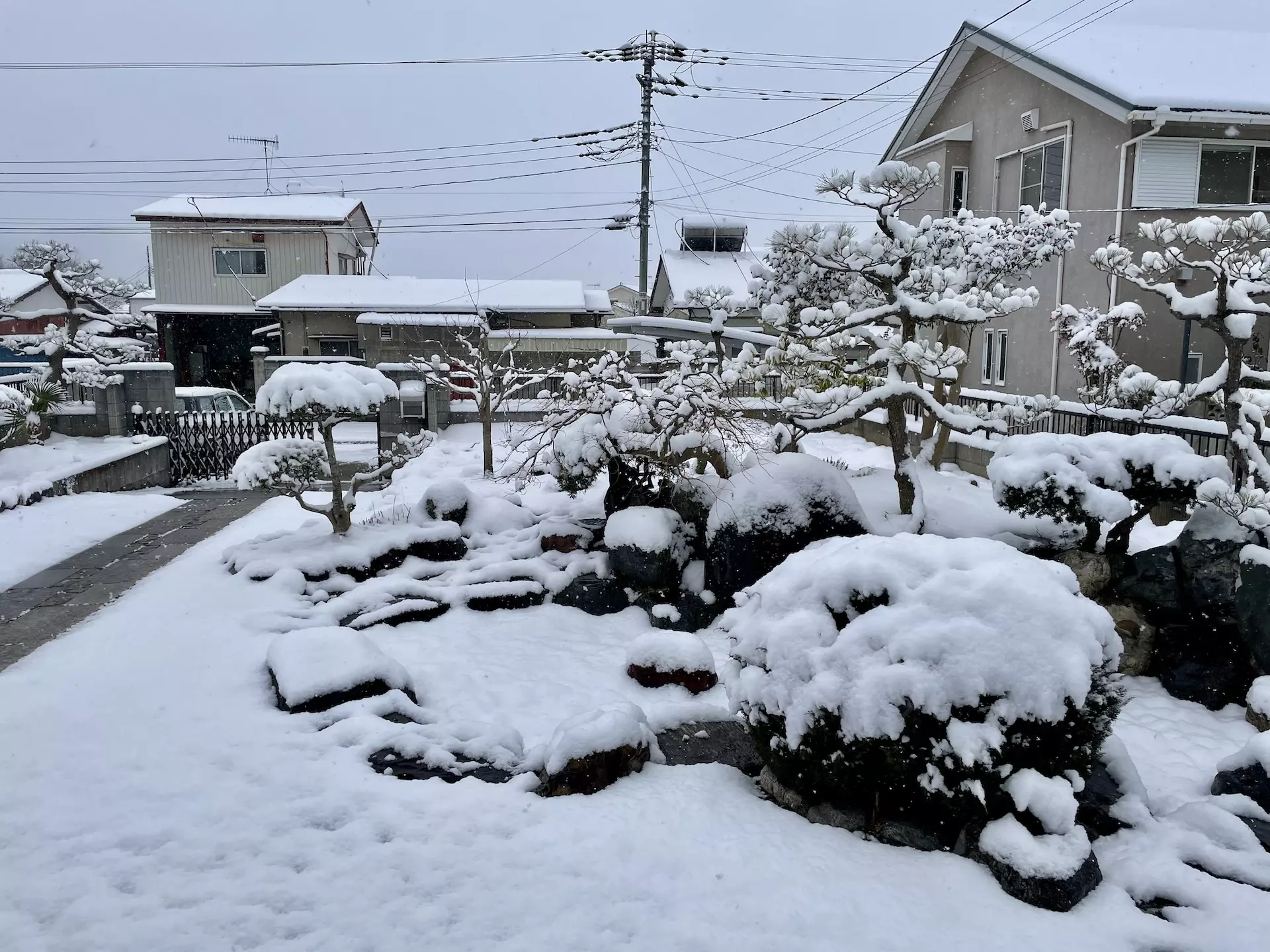 昨夜から雪が降り積もり、朝起きた時には一面雪景色になっていました。ここまで積もったのは2〜3年ぶりでしょうか。朝はピークだったものの、次第に雪からみぞれになり、午後には晴れ間も出て雪もかなり溶けました。一日の中で風景がコロコロ変化するのは面白いですね。