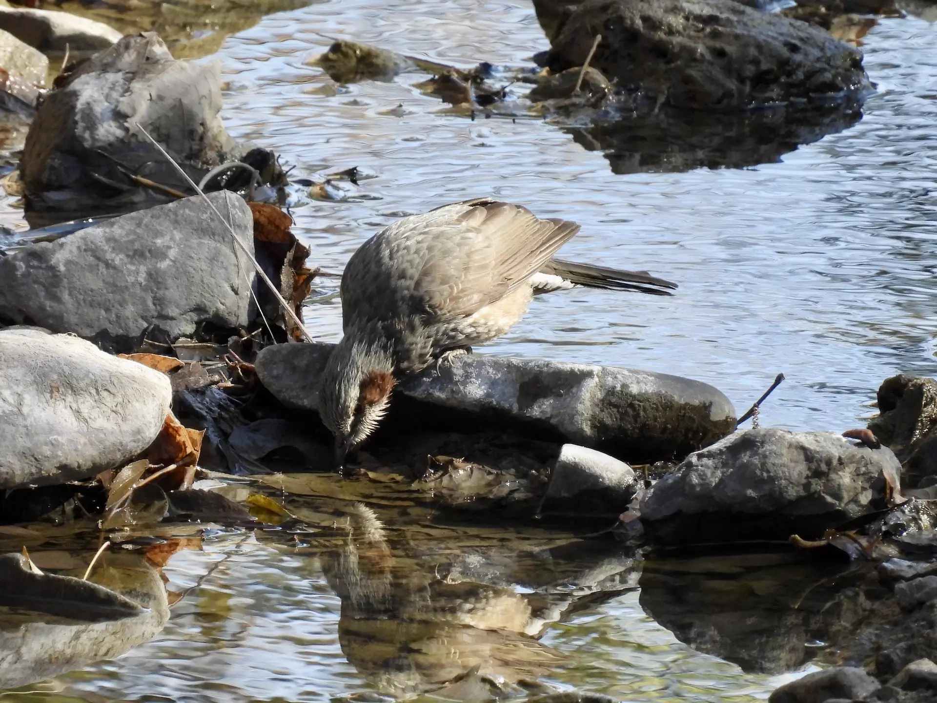 暖かかったせいかコジュケイやチョウゲンボウなどの姿は見えたものの、上手く写真には収められず。ただ、見飽きるほど見ているヒヨドリの水飲みシーンを撮影できました。ようやく雨や雪が降っても、食料から得られる水分はまだ少ないのかもしれません。面白い光景でよかったです。