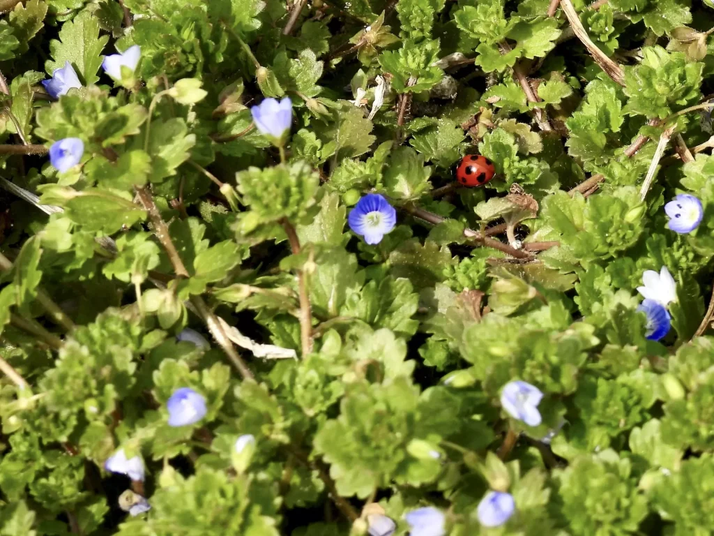 群生するオオイヌノフグリを撮影していたら、中からナナホシテントウが姿を現しました。小さな虫も増えてきていますが、てんとう虫は今シーズン初ではないでしょうか。どんどん春が近づいてきていますね。そういえば、ウグイスはまだ鳴かず、今日はツバメらしい鳴き声が聞こえました。