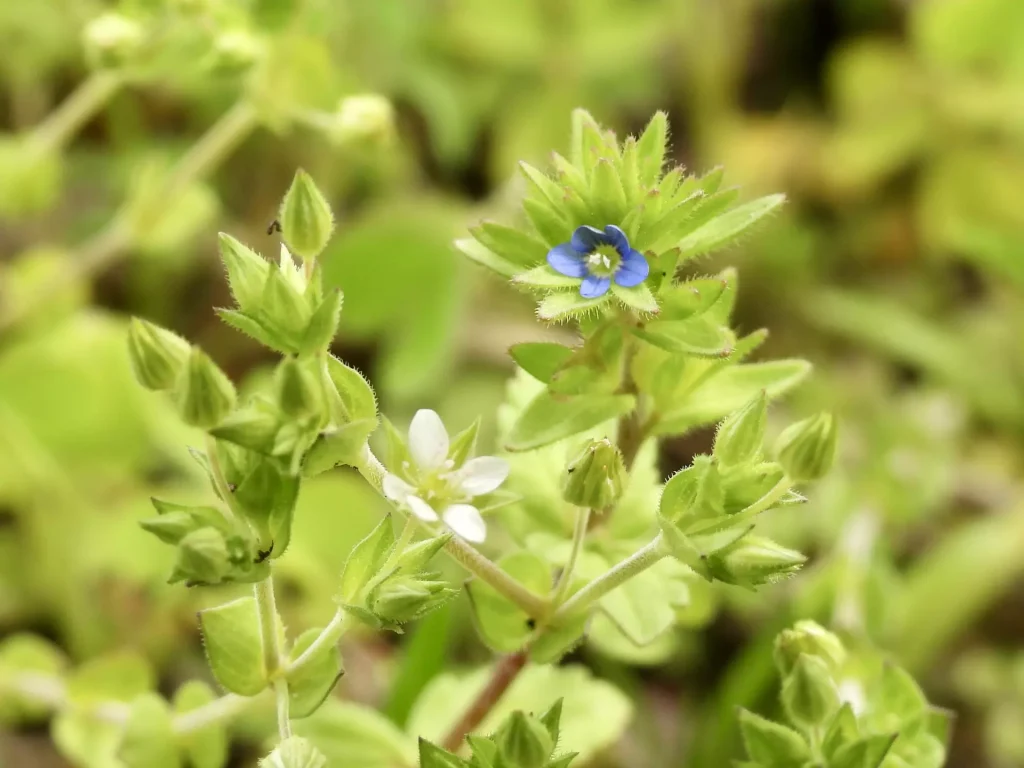 散歩がてら見つけた小さな花ですが、大きさはどちらも2〜3mm程度。青い方がタチイヌノフグリ、白い方がノミノツヅリらしいとAIさんが教えてくれました。ただ、気になるのがタチイヌノフグリの花びらは通常4枚なので、5枚あるのは個体差なのか花の種類を間違っているのか。。。