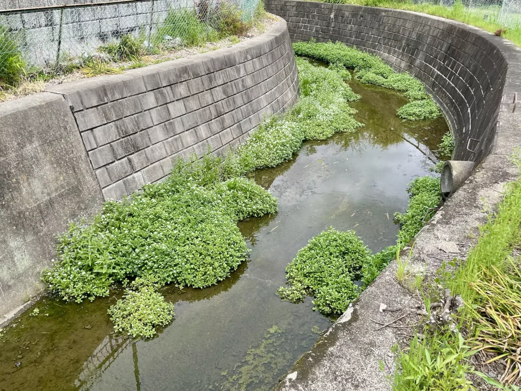 自宅近くの用水路にもかなり草がはびこる様になり、いくつか花も咲いていました。白いのがクレソンでおなじみのオランダガラシ。小さな紫色はムラサキタネツケバナでしょうか。場所によっては川幅いっぱいまで成長して、水が流れも分からなくなるので困ったものです。