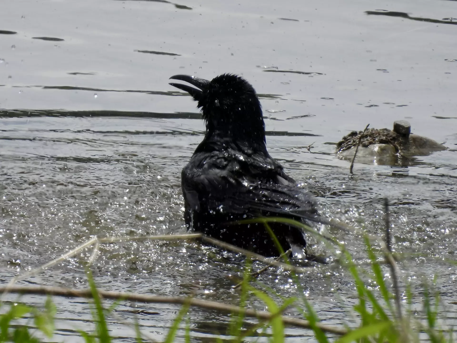 昨日の雨で川にも水がそこそこ流れていて、カラスが気持ちよさそうに水を浴びていました。ざばざばっと3〜4回水浴びをしたらすぐに上がってどこかへ行ってしまうのは、まさにことわざ通りの「カラスの行水」。なかなか面白いものが見られ、カラスの魅力も再認識しました。