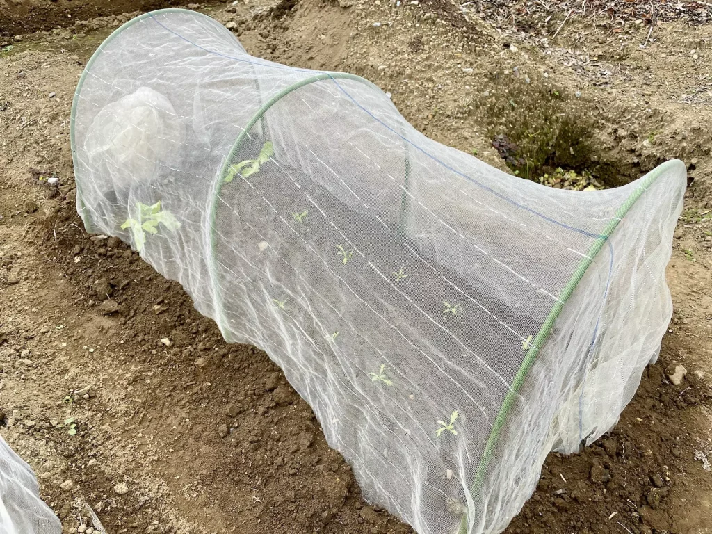 ご近所さんからもらったサンチュの苗と芽出しをした春菊を植え付けました。まだまだ虫も多いので、用心のためにネットをかけています。本当は玉ねぎ用にとっておいた畝なのですが、新たに準備しておかないといけないですね。11月に入ったら植え付け時期なので、早めに準備しないと。
