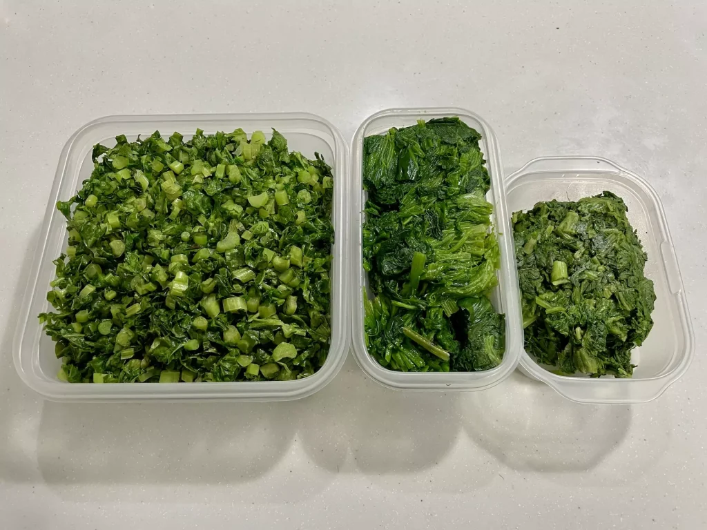 左から大根葉の塩炒め、ほうれん草のおひたし、春菊のおひたし。ご近所さんから夕方に大量の野菜をいただいたので、葉物野菜だけでも調理しておこうと、夕食後にやりました。ほうれん草とかはすでに正月価格になっていたので、本当に助かります。明日から夕食が華やかになりますね。