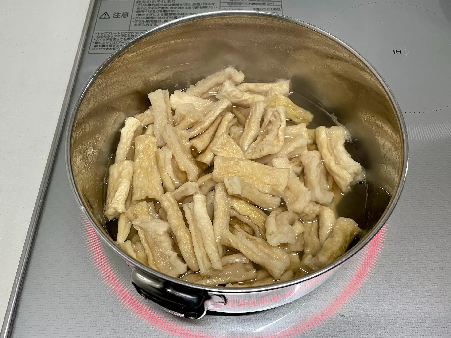 - ボウルに切り干し大根とひたひたになるくらいまで水を入れ、3時間ほど戻す。途中で水が足りなくなったら、ひたひたを目安に足す。