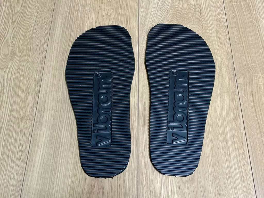 以前購入したワラーチ用のビブラムソールを足型に切りました。足を乗せてペンで輪郭を書き、ハサミで切るだけなので、ものの10分で終わりました。本当は穴を開けるところまでやえば完成も間近なのですが、遅い時間なのとネタのストックを作るため今日はここまで。残りはそのうち。