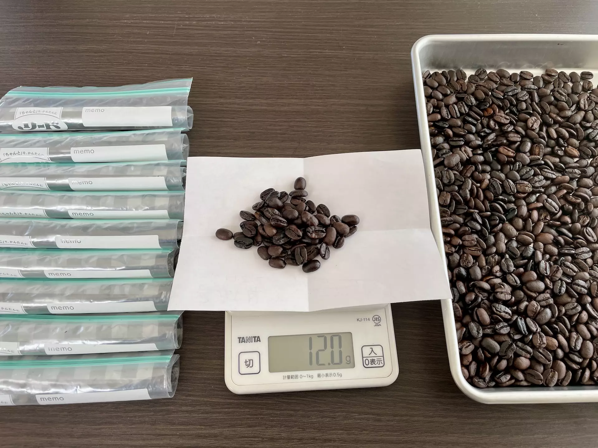 久々にコーヒー豆を焙煎しました。焙煎後で約270gになった豆を1人前(約12.0g)ずつ小分けにし、フリーザーバッグに入れて冷凍しておきます。毎回使う量は同じですし、長期保存には空気に触れさせないことが一番なので。抹茶メインのコーヒーサブだと、こういう運用方法が最適です。