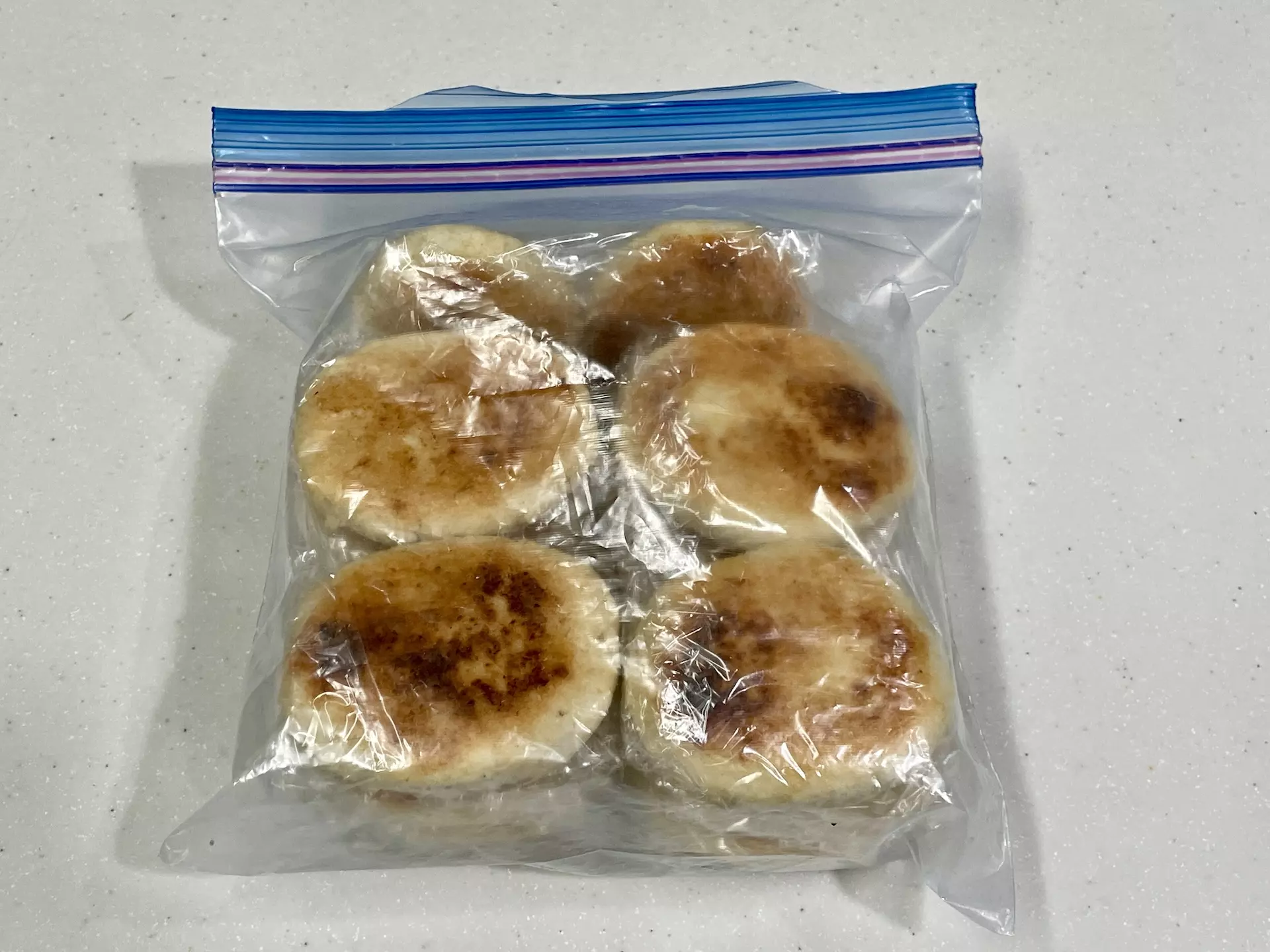 おからハンバーグを作りました。分量はおから300g、鶏ひき肉300gを元に1個あたり40gなので、1回で作るのが15〜16個くらい。毎日食べても2週間以上かかるので、最初にまとめて冷凍しています。ラップがもったいないので2個セットで包み、ジップロックに入れて冷凍。結構便利です。