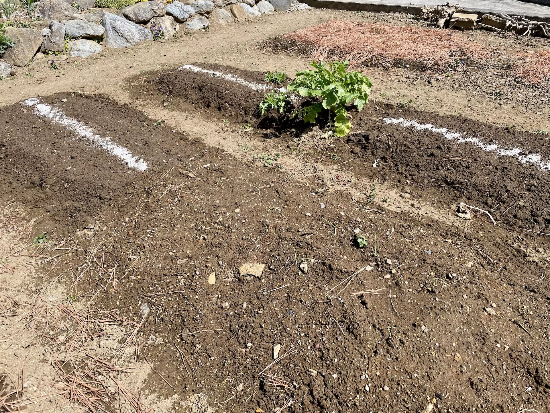 暖かいので畑の草取りだけをやろうと思ったものの、すんなり終わったので流れで春菊と小松菜の種を蒔きました。苦土石灰が見当たらなかったのですが、種まきを終えて片付けようとしたら変なところから発見。畝の中央に苦土石灰と消石灰を適当に撒いておきました。何とかなるでしょう。