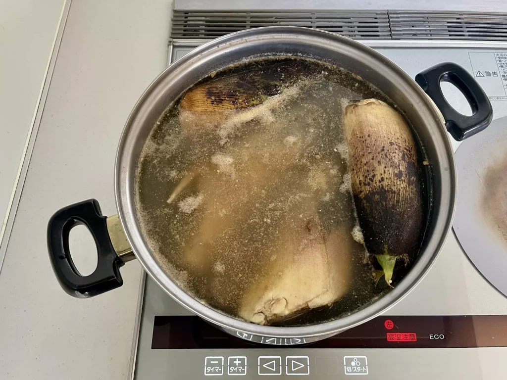 ご近所さんからたけのこを大小合わせて5本いただいたので、早速大鍋で下茹でをしました。ずっと放置していたぬか床のぬかを入れ、茹でること約1時間強。冷めたらだし醤油で煮てさっぱり味わいたいものです。視覚や触覚だけでなく、味覚からも春らしい季節を感じています。